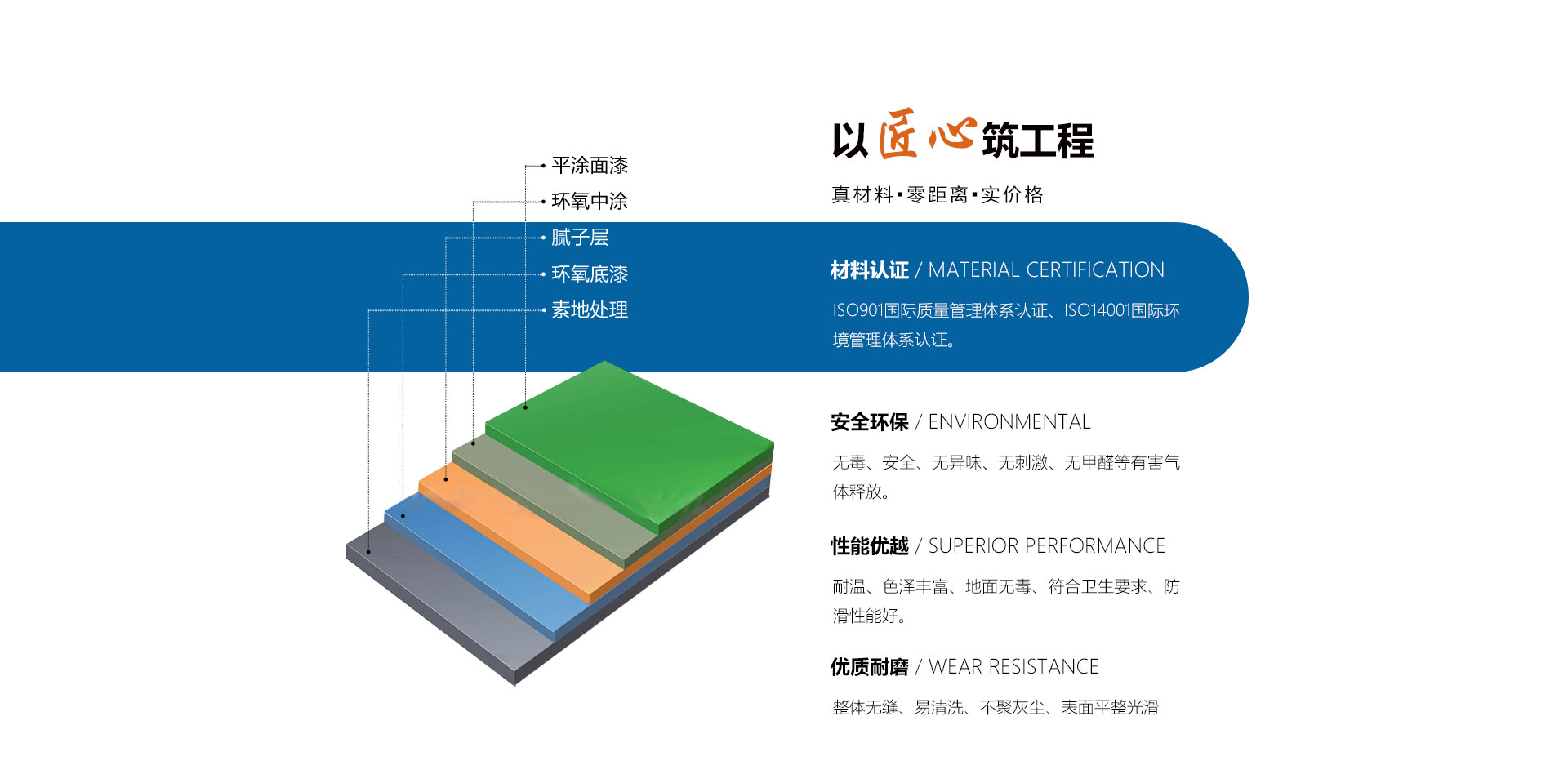 安徽世博裝飾工程有限公司成立于2009年,是一家以外墻涂料、工業(yè)地坪設(shè)計、施工和銷售為主要的專業(yè)性工程公司、是工業(yè)地坪施工的專業(yè)企業(yè)。公司設(shè)立了售后服務(wù)中心,用戶遍布全國大中小城市,一大批具有標(biāo)志性的長期合作伙伴。“世博公司”環(huán)氧地坪工程,受到了越來越多的不同行業(yè)用戶的好評及青睞。公司擁有一批經(jīng)驗豐富的管理人員和專業(yè)的施工人員,以保障產(chǎn)品的成功應(yīng)用,用較小的代價獲得理想的效果,尤其在地坪涂裝方面優(yōu)勢突出。而且以好的品質(zhì)管理模式,向客戶提供“獨具魅力”、“性能優(yōu)異”、“質(zhì)量穩(wěn)定”的產(chǎn)品。公司主要產(chǎn)品包括:平涂型環(huán)氧地坪、環(huán)氧砂漿地坪、環(huán)氧樹脂自流平地坪、滾涂型防靜電地坪、自流平防靜電地坪、復(fù)古地坪、水性環(huán)氧樹脂地坪、彩色透水混凝土地坪、壓花壓模藝術(shù)地坪、金剛砂耐磨硬化地坪、混凝土密封固化劑地坪、乙烯基酯重防腐地坪、GEP 標(biāo)準(zhǔn)型地坪、彈性PU運動場地坪、塑膠跑道地坪,PVC橡膠地板、停車場地坪、無震...